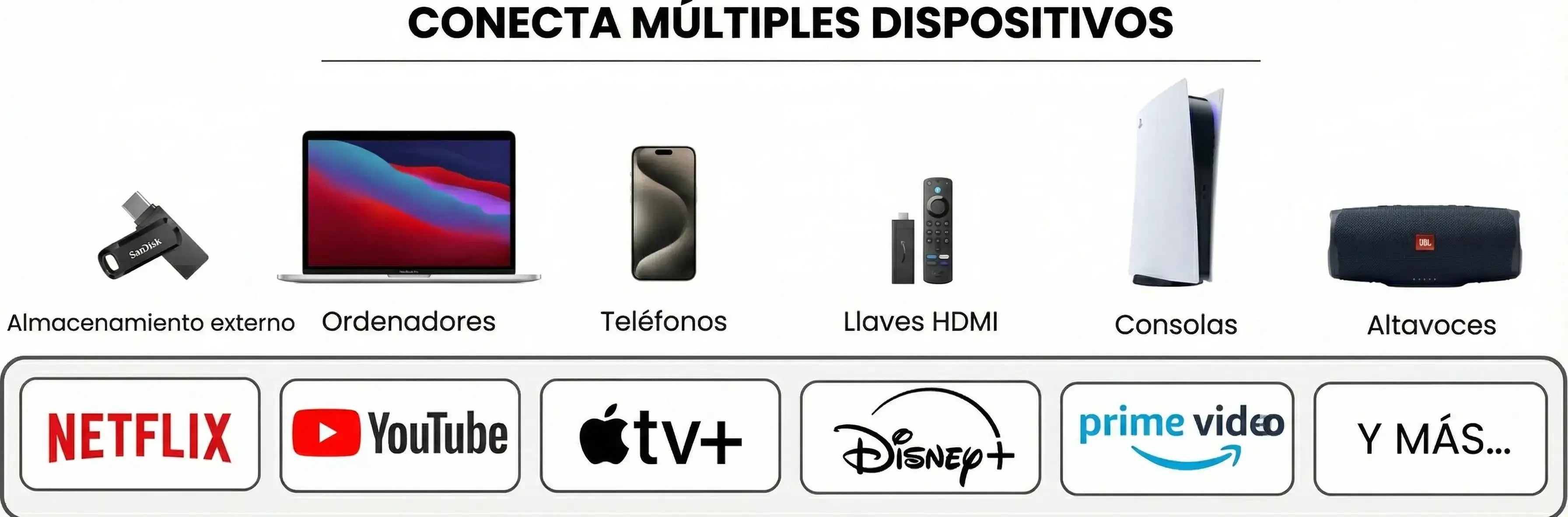 La conectividad es muy buena, permitiendo wifi, bluetooth, cable, etc...